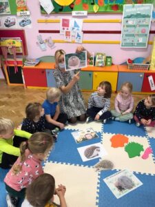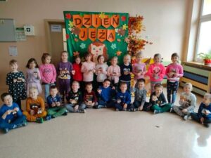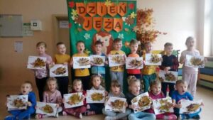 🦔🦔🦔🦔„Idzie, idzie jeż, Ten kłujący zwierz, Nóżkami tup, tup, I pod listek siup” W naszym przedszkolu dnia 17.11.2021 r. obchodziliśmy Dzień Jeża. Podczas zajęć dzieci miały okazję poznać bliżej małe, kolczaste zwierzątka. Dzień ten, był znakomitą okazją by uświadomić dzieciom, jak ważną rolę w środowisku pełnią jeże, przybliżenie gatunku objętego częściową ochroną. Przedszkolaki dowiedziały się, co zagraża jeżykom i jak można im pomóc. Dzieci z wielką radością i zaangażowaniem uczestniczyły w proponowanych aktywnościach.