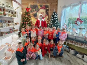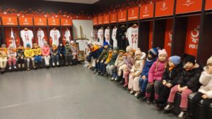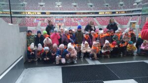 Dnia 27 listopada 2025 r. dzieci z grup „Pszczółek” i „Żabek” wybrały się na wyjątkową wycieczkę do Fabryki Bombek w Wołominie, a następnie na Stadion Narodowy w Warszawie.