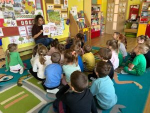 Następnie przyszedł czas na krótką zabawę dydaktyczną, podczas której „Pszczółki” utrwaliły wiedzę o zdrowej żywności, rozpoznawały produkty, segregowały je na zdrowe i mniej zdrowe, a także tworzyły własne propozycje śniadaniowych zestawów. 🧠🥕