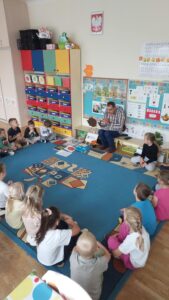 17 września 2025 r. w naszych przedszkolnych grupach „Pszczółek” i „Żabek” mieliśmy wyjątkowego gościa – pana Antoniego z Biblioteki Pedagogicznej w Siedlcach. Podczas spotkania dzieci mogły poznać ciekawe książki nawiązujące do Dnia Kropki. Było twórczo, kolorowo i bardzo inspirująco! ✨