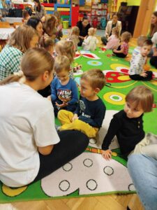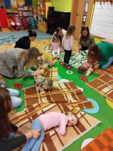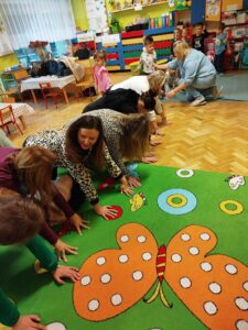 28 listopada w gr. ,,Smerfy” odbyły się zajęcia otwarte oparte na metodzie Ruchu Rozwijającego Weroniki Sherborne. Te typowe zajęcia były dydykowane najmłodszym przedszkolakom oraz ich rodzicom. Chętne pary (rodzic – dziecko) z szerokim uśmiechem i pozytywnym nastawieniem, ochoczo zaangażowały się w zaproponowane zabawy ruchowe i proste ćwiczenia, na jakich oparta jest Metoda Ruchu Rozwijającego. Rozwijanie sprawności fizycznej oraz umiejętności współpracy były ważnymi celami zajęć, ale tak naprawdę najważniejszy był jakościowy czas spędzony razem z dzieckiem.