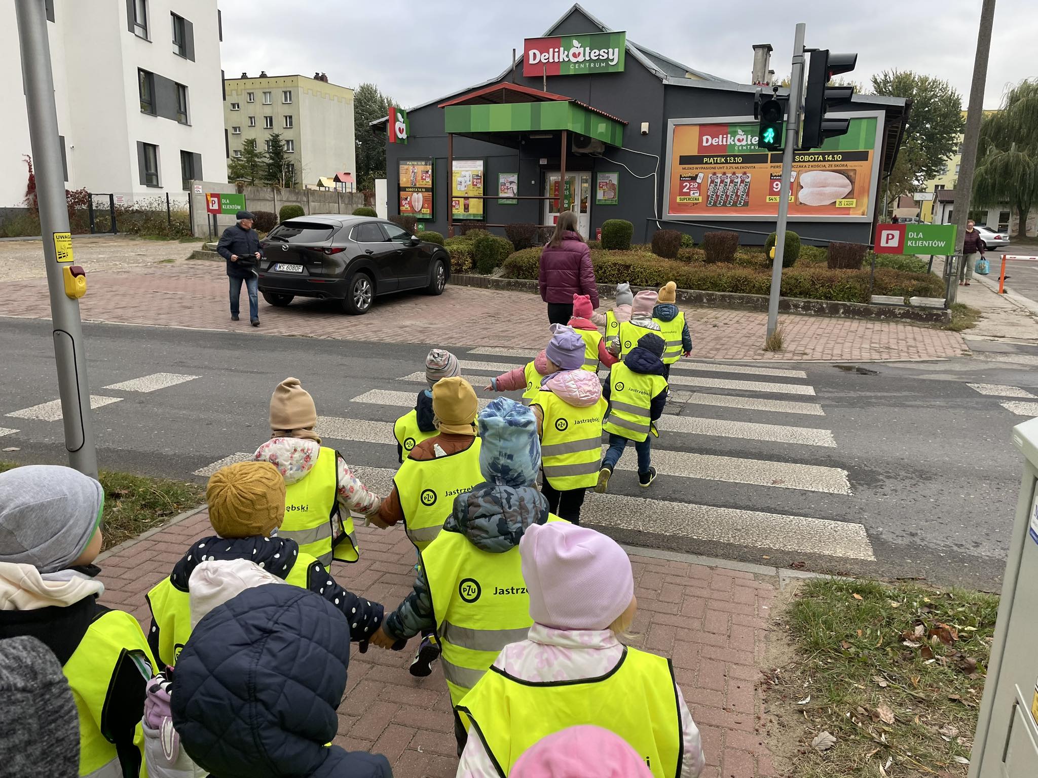 16.10.23 r. Wycieczka „Żabek” na pobliskie skrzyżowanie w celu zapoznania się z podstawowymi zasadami bezpieczeństwa na drodze. 🚗🚦🧍🏼♀️🧍🏼