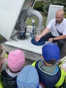19 maja dzieci z gr. „Żabki” udały się z wizytą do Przedsiębiorstwa Wodociągów i Kanalizacji, które mieści się przy ul. Leśnej. Na miejscu nasze przedszkolaki zostały oprowadzone przez pracownika zakładu, pana Marcina Żegunię, który w ciekawy i przystępny sposób opowiedział dzieciom o działalności przedsiębiorstwa. Wycieczka była okazją do przypomnienia sobie o tym, jak ważne jest dbanie o czyste środowisko i jak wielki wpływ na nie mają ludzie.