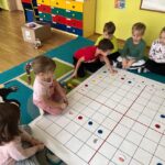 W ramach realizacji ogólnopolskiego programu ,,Uczymy dzieci programować” grupa ,,Smerfy” realizowała w grudniu kolejne zadanie pt. ,,Przybądź Święty Mikołaju”. Podczas tych zajęć, dzieci przy użyciu maty do kodowania i kolorowych kubeczków wykonały wiele ciekawych aktywności o tematyce świątecznej. Celem przeprowadzonych zajęć było wspólne oczekiwanie na Święta Bożego Narodzenia, upowszechnianie kodowania oraz wspólna i radosna zabawa.