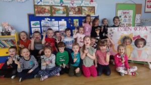 Celem obchodów tego dnia było podkreślenie znaczenia kotów w życiu człowieka. W grupie „Biedronki” gościły dwa koty „Burasek” i „Łaciatek” wraz ze swoją opiekunką, która opowiedziała dzieciom, o „kocich zwyczajach”, ich ulubionych przysmakach i zabawach. Dzieci z dużym zainteresowaniem słuchały opowieści i obserwowały zachowanie kotów w sali. Na pamiątkę niecodziennej wizyty, grupa otrzymała, bogato ilustrowana książkę o kotach.