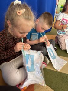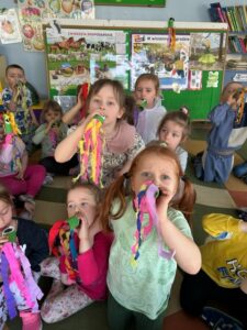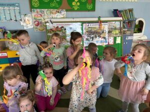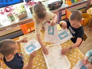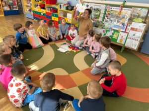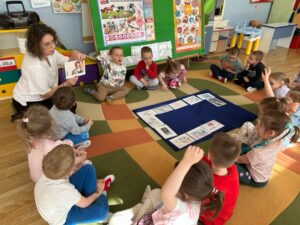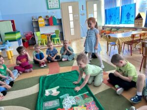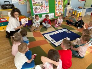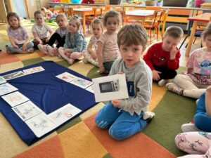 Na przełomie kwietnia i maja 2025 r. grupa „Pszczółek” zrealizowała ostatnie zadania projektu „Alfabet logopedyczny”. Realizacja projektu polegała na wprowadzaniu dzieciom kolejnych liter alfabetu w kontekście ćwiczeń logopedycznych. Każdej literze towarzyszyły zadania i zabawy ukierunkowane na usprawnianie aparatu mowy i funkcji słuchowych dzieci. W ramach zajęć wykorzystywano nagrania, instrumenty, obrazki, karty pracy, gry ruchowe i manualne, co miało na celu stworzenie atrakcyjnego i angażującego środowiska do nauki.