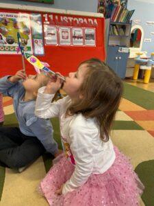 W dniu 09.04.2024 r. z okazji ,,Dnia Teatru” dzieci z grupy ,,Smerfy” zaprezentowały się przed swoimi Rodzicami w przedstawieniu pt. ,,Smerfny Świat”. Barwne stroje i ciekawa gra aktorska przedszkolaków sprawiła, że często rozbrzmiewały głośne brawa. Dziękujemy Rodzicom za przygotowanie pięknych strojów dla dzieci 😀