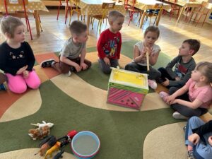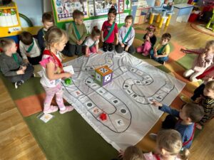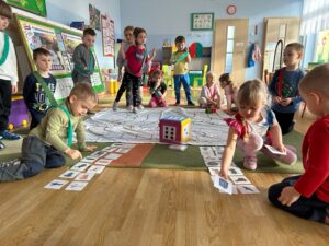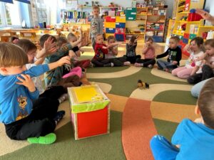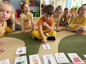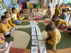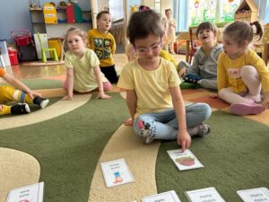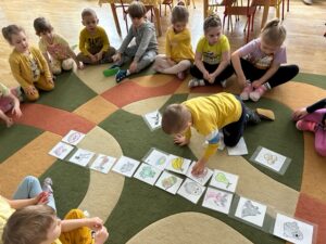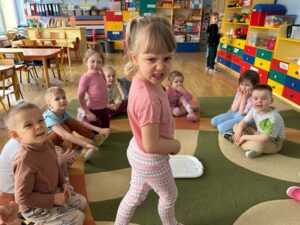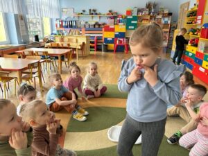 W marcu „Pszczółki” kontynuowały realizację projektu pt. „Alfabet logopedyczny”. Tym razem dzieci usprawniały aparat mowy podaczas zabaw N- Naśladuj mnie, P-Planszówka. Rozwijały wrażliwość słuchową w zabawie O-Odkryj obrazek. Kształtowały słuch fonemowy w zabawie R-Różnicowanie.