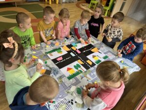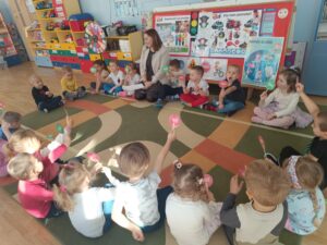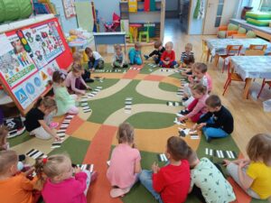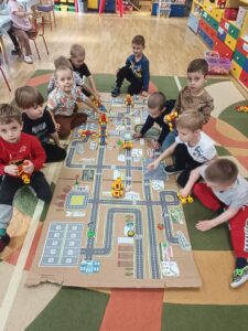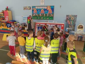 W październiku dzieci z gr. III „Pszczółki” realizowały tematykę związaną z bezpieczeństwem na drodze. Dzieci poprzez zabawę przypomniały sobie zasady ruchu drogowego m.in utrwaliły znajomość znaków drogowych , bezpiecznego przejścia przez jezdnię, dowiedziały się jak ważne są odblaski oraz wcieliły się w rolę pieszego i kierowcy.