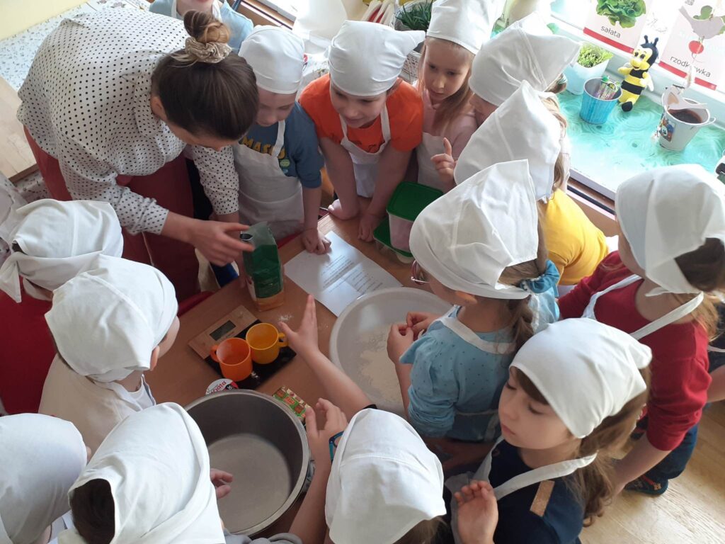 Dnia 8.03.2023 w gr.IV Biedronki odbyło się spotkanie z mamą Pawełka która opowiadała o swojej pracy analityka finansowego oraz podzieliła się z dziećmi swoją pasją – pieczeniem ciast. Mama zaprosiła dzieci do wspólnego pieczenia ciasteczek, które były pysznym deserem po obiedzie. Dziękujemy mamie Pawełka.