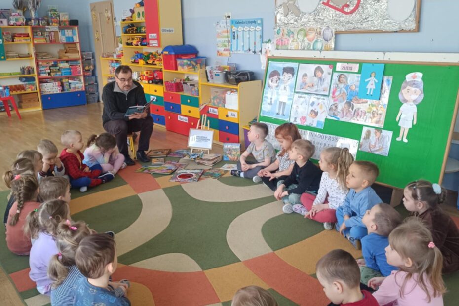 4 marca grupa „Pszczółki” miała przyjemność ponownie gościć pana Antoniego, przedstawiciela Biblioteki Pedagogicznej w Siedlcach. Podczas spotkania dzieci miały okazję wysłuchać fascynujących opowieści, które przeniosły… Dowiedz się więcej »Wizyta pracownika Biblioteki Pedagogicznej w grupie „Pszczółki”_📖🦖🦕