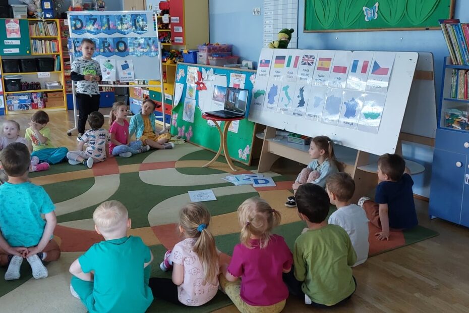 Dnia 8.05.24r.w naszym przedszkolu obchodziliśmy Dzień Europy.Przedszkolaki dowiedziały się wiele ciekawych rzeczy,np ile gwiazdek ma flaga Unii Europejskiej czy co to jest Syriusz.