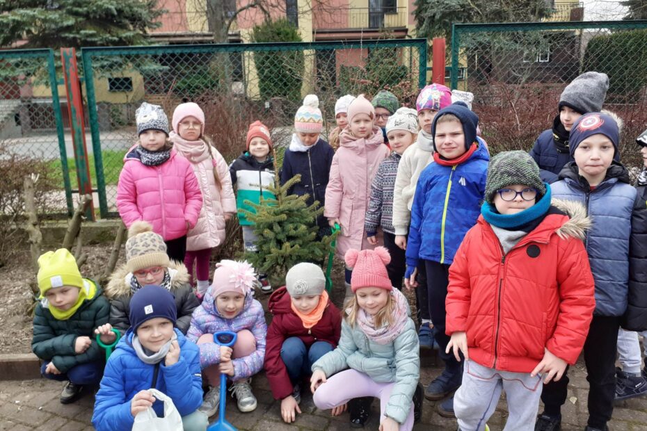 Dnia 4.04.2023 dzieci z grupy IV Biedronki na pamiątkę swego pobytu w przedszkolu zasadziły drzewko któremu nadano imię Igiełka.