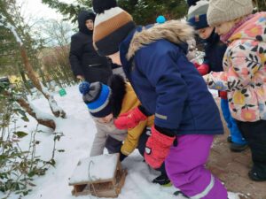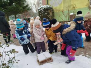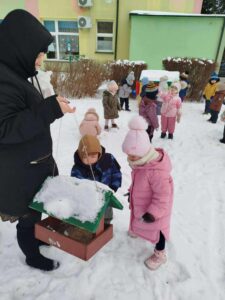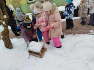 Dokarmianie ptaków przez najmłodszą grupę ,,Smerfy” – 10.02.2026 r.