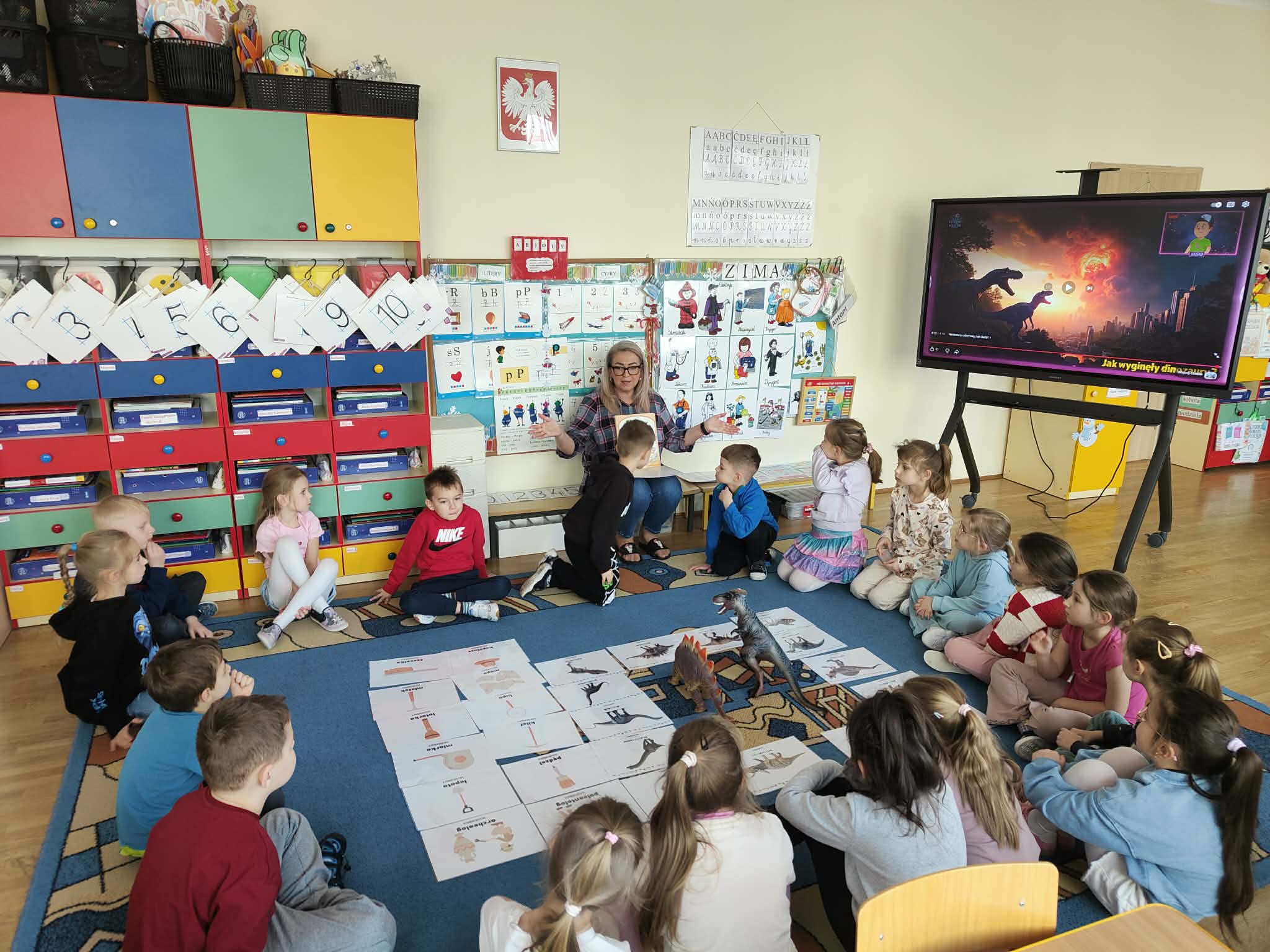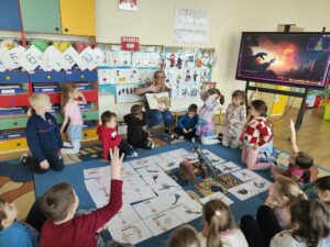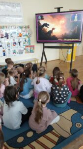 W dniach 9–13 marca 2026 r. grupa IV „Pszczółki” realizowała tematykę zajęć pt. „W świecie dinozaurów”. Był to tydzień pełen ciekawych odkryć i kreatywnej zabawy. Dzieci poznawały różne gatunki dinozaurów oraz ciekawostki z życia tych prehistorycznych zwierząt. Podczas zajęć brały udział w zabawach i grach dydaktycznych, a także w zabawie „Co znajduje się w jajku…