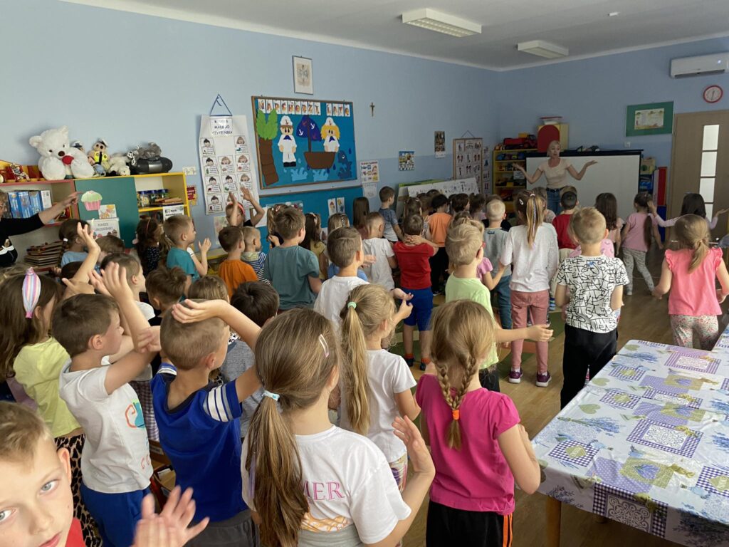 13 czerwca w naszym przedszkolu obchodziliśmy „Dzień dobrych uczynków”. W tym dniu dzieci dowiedziały się, czym jest dobry uczynek, wymieniały swoje przykłady oraz proponowały dobre uczynki, które są w stanie wykonać dla swoich najbliższych. Ponadto, przedszkolaki rozwiązywały quiz nt. właściwych zachowań w stosunku do innych osób, uczestniczyły w zabawach muzyczno-ruchowych, oglądały bajkę edukacyjną pt. „Agencja dobrych uczynków”.