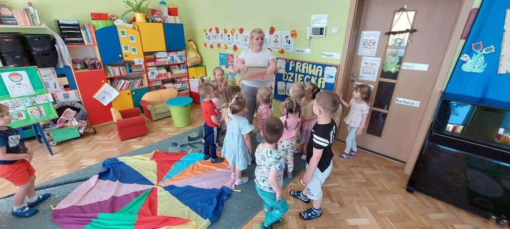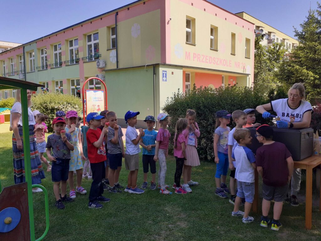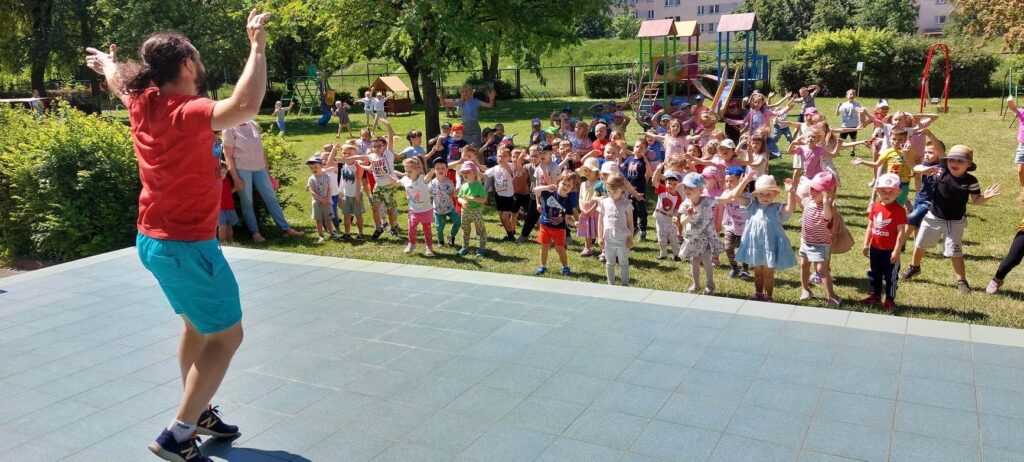 1 czerwca to najradośniejsze święto dla tych małych i dużych dzieci. W naszym przedszkolu ten dzień obchodziliśmy niezwykle radośnie. Od samego rana na nasze wszystkie przedszkolaki czekało wiele atrakcji min. malowanie w plenerze, gry zespołowe, ale największą niespodzianką dla dzieci był teatrzyk przygotowany przez nauczycielki pt. ,,Czerwony Kapturek”. Dzieci między czasie zostały poczęstowane lodami oraz innymi smakołykami. Atrakcją również w tym dniu był udział w zajęciach ,,Zumby” poprowadzone przez Pana Tomasza Łobacz, bawiąc się przy wspaniałej muzyce. Wszystko w tym dniu było udane, dzieci do domów wracały z szerokim uśmiechem oraz symbolicznymi podarkami w dłoniach.