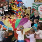 To już kolejne grupowe zajęcia logopedyczne dla dzieci 3-letnich stymulujące rozwój mowy i komunikacji z otoczeniem. Tym razem dzieci wybrały się na deszczową wycieczkę w jesienne poranki. Bawiąc się, ćwiczyły buzię i język, dmuchały na kropelki deszczu, uczyły się prostych wierszyków-rymowanek. Podczas zajęć wykorzystane były elementy metody psychostymulacyjnej, gdyż ruch i zabawa to naturalna forma…