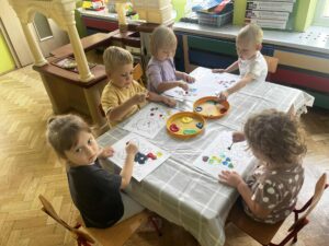 15 września 2025 r. obchodziliśmy w grupie najmłodszej ,,Smerfy” Międzynarodowy Dzień Kropki 🔴🟢🔵. Głównym celem tego dnia jest pobudzanie kreatywności, pomysłowości, talentu i odwagi w pokonywaniu trudności. Tego dnia ubrania dzieci oraz Pań wypełnione były kolorowymi kropkami. Dzieci brały udział w wielu kreatywnych zabawach oraz tworzyły piękne prace plastyczne, których bohaterem była „kropka”. Tego dnia ,,Smerfy” wspaniale się bawiły i odkrywały swoje talenty inspirowane kropką. Był to dzień pełen radosnej, twórczej i kreatywnej zabawy. Bądźmy kreatywni! Pamiętajmy, że wszystko zaczyna się od kropki!
