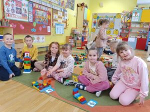 kreatywnych zabawach. Układały klocki na matematycznym wiatraku według