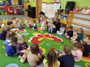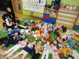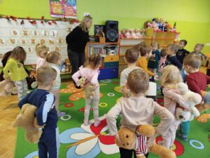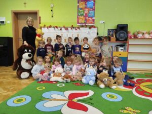 Nie od dziś wiadomo, że miś jest najukochańszą zabawką wszystkich dzieci. Jest miły w dotyku, można go przytulić, a nawet zwierzyć mu się z sekretów. Pomimo coraz atrakcyjniejszych zabawek, moda na misie nie przemija. Dlatego też 25 listopada dzieci z najmłodszej grupy uczestniczyły w obchodach „Światowego Dnia Pluszowego Misia”. Dzieci w tym dniu przyszły do przedszkola ze swoimi pluszowymi ulubieńcami – misiami, a całe spotkanie rozpoczęło się od wizyty ogromnego pluszowego Misia, który zaprosił wszystkich do wspólnej tanecznej zabawy. Przedszkolaki wraz z Misiem bawiły się przy wielu misiowych piosenkach, brały udział w konkursach i zabawach. Na zakończenie dzieci przyznały jednogłośnie, że miś jest najlepszym przyjacielem dziecka.