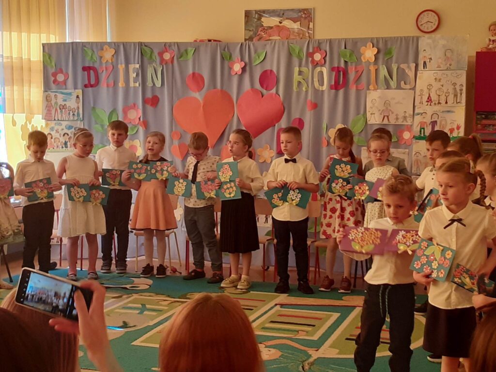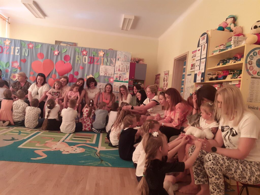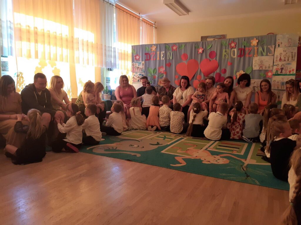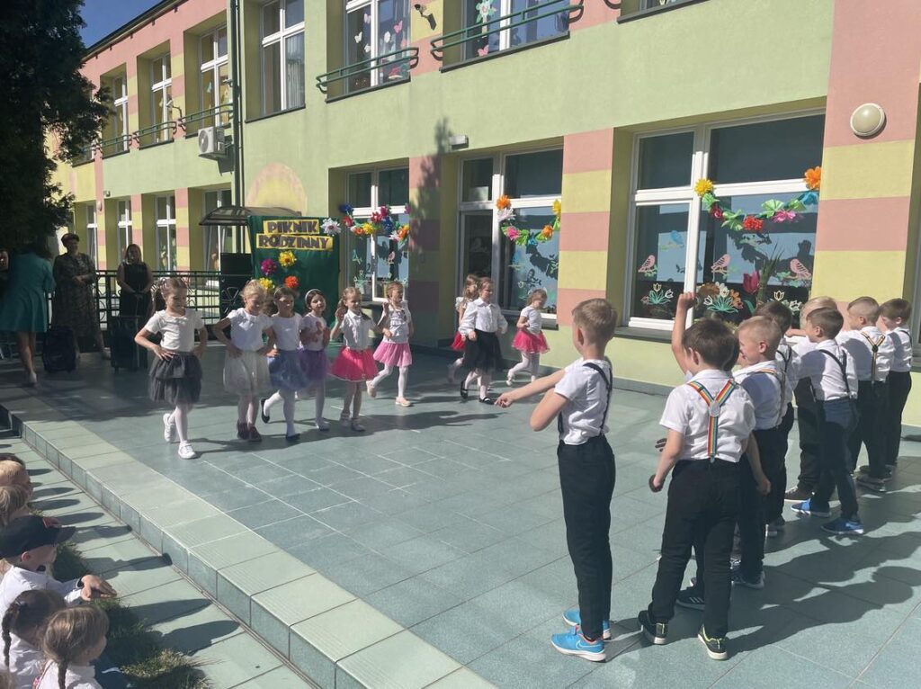 31.05.23 r. w naszym przedszkolu uroczyście obchodziliśmy Dzień Rodziny. Każda z grup przygotowała dla rodziców niespodzianki w postaci wierszy, piosenek i drobnych upominków. Po części głównej wszystkie przedszkolaki zaprezentowały się w pokazach tanecznych na tarasie przedszkola. Wraz z zakończeniem części artystycznej zaprosiliśmy wszystkich gości na Rodzinny Piknik.