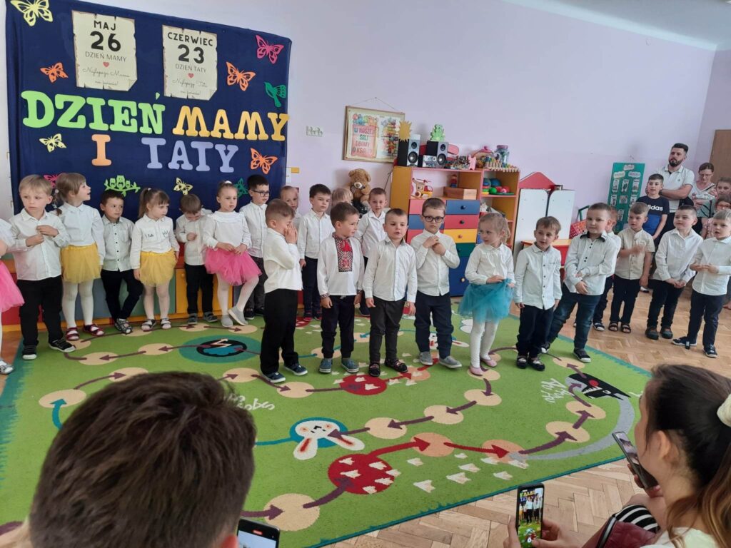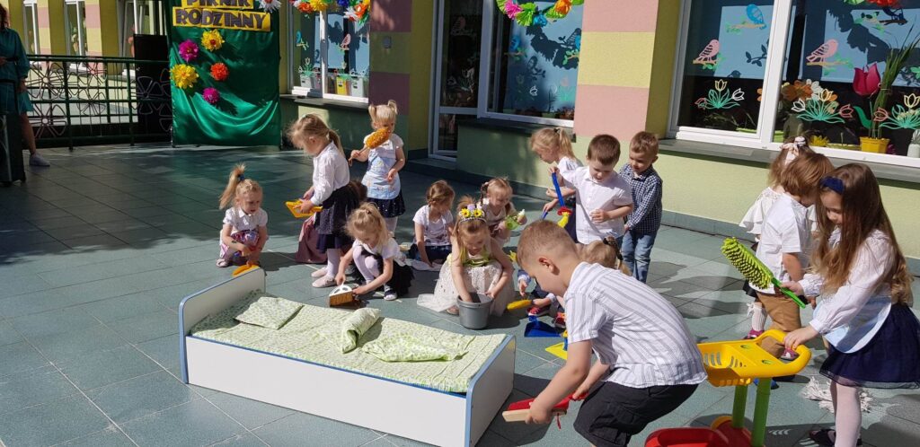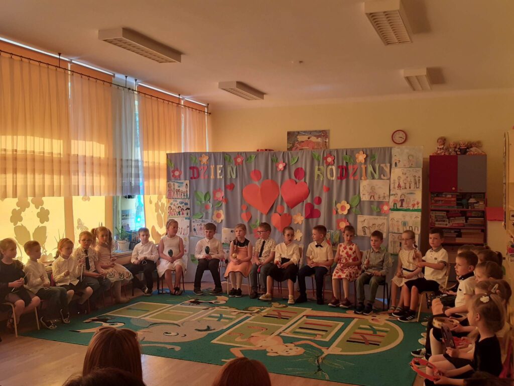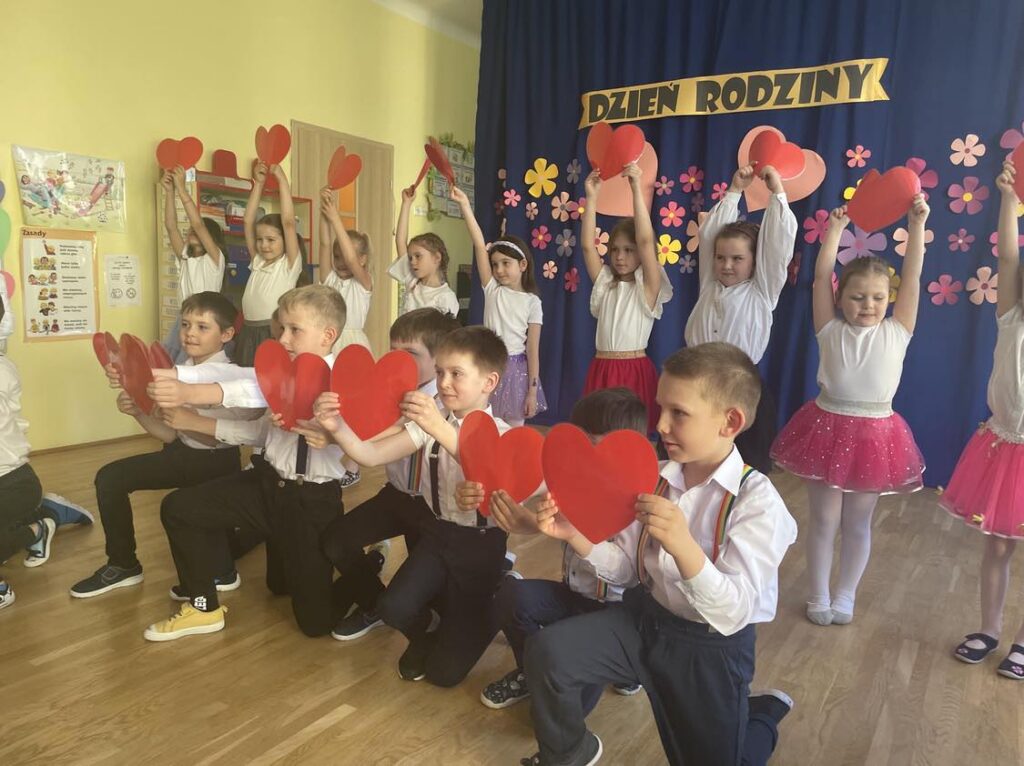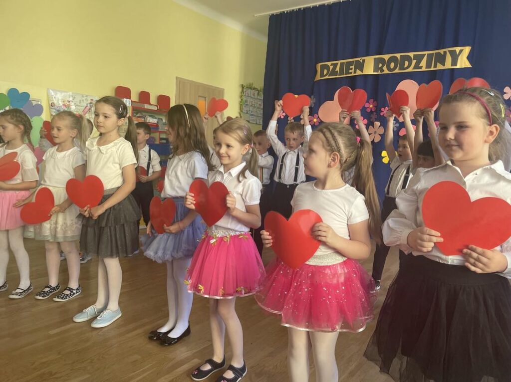 31.05.23 r. w naszym przedszkolu uroczyście obchodziliśmy Dzień Rodziny. Każda z grup przygotowała dla rodziców niespodzianki w postaci wierszy, piosenek i drobnych upominków. Po części głównej wszystkie przedszkolaki zaprezentowały się w pokazach tanecznych na tarasie przedszkola. Wraz z zakończeniem części artystycznej zaprosiliśmy wszystkich gości na Rodzinny Piknik.