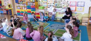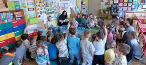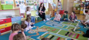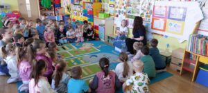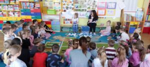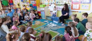 Dnia 10.04.25r. "Żabki" i " Smerfy" miały zaszczyt gościć Panią Higienistkę Stomatologiczną. Spotkanie miało na celu uświadomienie dzieciom, jak ważna jest dbałość o higienę jamy ustnej oraz przełamanie obaw przed wizytą u stomatologa. Bardzo dziękujemy Pani Mariannie Rzążewskiej za fantastyczne zajęci a i poświęcony czas.