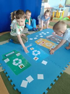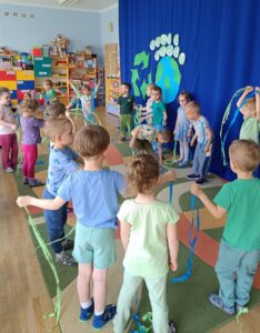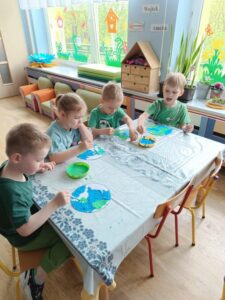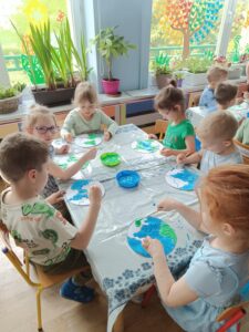 22 kwietnia grupa "Pszczółki" obchodziła Dzień Ziemi. Podczas zajęć dzieci rozmawiały o tym, jak dbać o naszą planetę i dlaczego ochrona środowiska jest tak ważna. Przedszkolaki dowiedziały się, jak prawidłowo segregować odpady oraz wzięły udział w zajęciach plastycznych. Wykonały piękne prace, malując wizerunek Ziemi farbą Puffy, co sprawiło im mnóstwo radości. Był to dzień pełen ciekawych rozmów, twórczej zabawy i rozwijania świadomości ekologicznej.