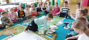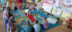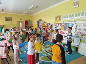 Dnia 7.05.25 r. "Żabki" obchodziły "Dzień Strażaka". Dzieci w tym dniu doskonaliły wiadomości na temat pracy strażaków oraz kształtowały umiejętności związane z bezpieczeństwem.