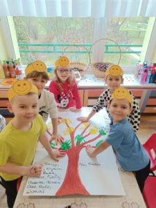 Dnia 21.11.2025 r. Grupa IV „Pszczółki” obchodziła Dzień Życzliwości. Dzieci stworzyły wyjątkowy kwiatek życzliwości z miłymi słowami, śpiewały piosenkę o dobroci oraz w parach uczyły się współpracy i wzajemnego wsparcia. Na zakończenie wszyscy wspólnie wykonali drzewo życzliwości, które stało się symbolem ciepłej i przyjaznej atmosfery w grupie.🌼😀