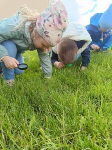 Dzieci z grupy Pszczółki 15 mają 2025r. wybrały się na wiosenne wyjście na łąkę, zabierając ze sobą lupy. Z ogromnym zaciekawieniem obserwowały rośliny, owady i inne skarby przyrody. Była to doskonała okazja do nauki przez zabawę i rozwijania ciekawości świata.