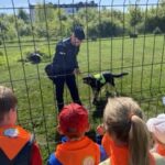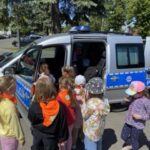 W dniu 09.05.2024 r. dzieci z grupy V „Kotki” odwiedziły Komendę Miejską Policji w Siedlcach. Celem wycieczki było zapoznanie dzieci ze specyfiką pracy policjanta. Podczas pobytu na Komendzie przedszkolaki miały okazję m.in. zobaczyć pracę oficera dyżurnego na stanowisku kierowania, obejrzeć pomieszczenia wykorzystywane w służbie przez funkcjonariuszy m.in. strzelnicę, siłownię oraz pokój przesłuchań. Dzieci z wielką ciekawością obejrzały również pokaz tresury i posłuszeństwa psa służbowego, dowiedziały się po czym rozpoznać zbliżający się atak zwierzęcia oraz jak w takiej sytuacji postąpić.