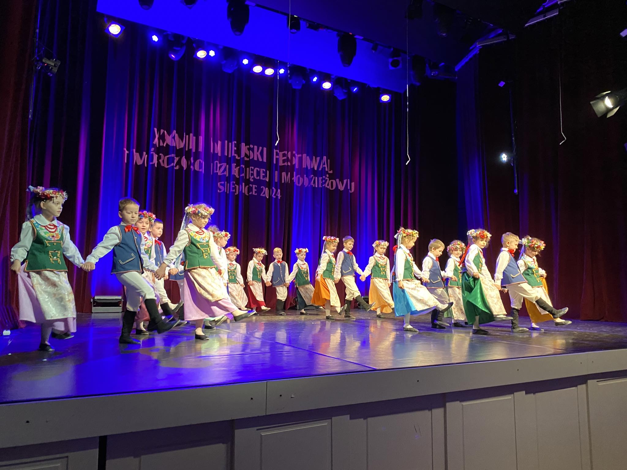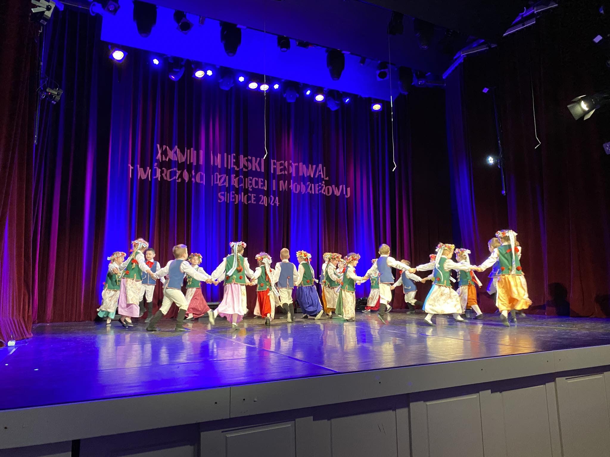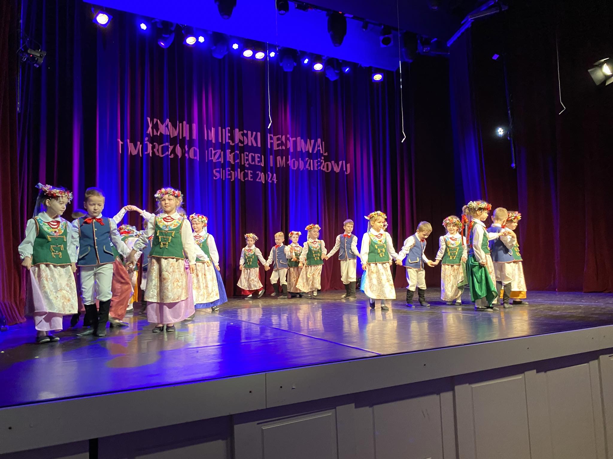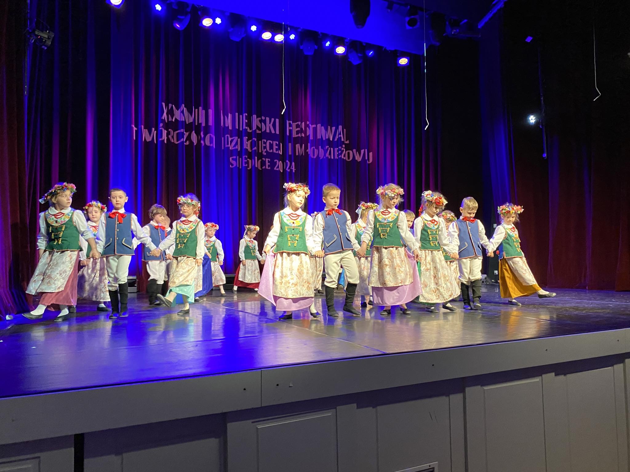 W dniu 12.04.2024 r. grupa V „Kotki” reprezentowała nasze przedszkole na XXVIII Miejskim Festiwalu Twórczości Dziecięcej i Młodzieżowej organizowanym przez Miejski Ośrodek Kultury w Siedlcach, w kategorii Taniec ludowy. Dzieci w pięknych, ludowych strojach zaprezentowały „Tańce Śląskie”. Miło nam poinformować, że Kotki zostały laureatami! Serdecznie gratulujemy naszym milusińskim! 🥇🥇🥇