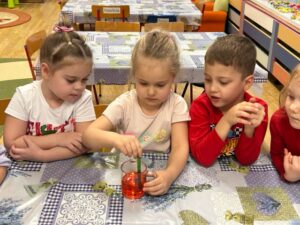 Grupa Pszczółek w roku 2024/2025 włączyła się do realizacji 13 edycji ogólnopolskiego programu edukacyjnego „Mamo, tato, wolę wodę!”. W ramach programu dzieci brały udział w cyklu zajęć, których głównym celem było podniesienie poziomu wiedzy na temat właściwości wody, jej wpływu na życie i zdrowie człowieka oraz w zajęciach dotyczących zdrowego odżywiania i stylu życia. W drugim semestrze, podobnie jak w poprzednim realizowano tematykę z trzech bloków tematycznych: Przygody na zdrowie, Eko przygody, Przygody na zdrowie – blisko natury.