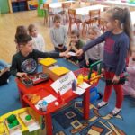 W grupie V „Kotki” na początku lutego realizowany był projekt badawczy nt. „Pieniądze”. Celem przeprowadzonych zajęć było wzbogacanie wiadomości na temat polskich pieniędzy. Rozpoczynając projekt ustaliliśmy wspólnie jaką wiedzę dzieci posiadają na temat pieniędzy, po czym stworzyliśmy siatkę pytań dotyczących tego, czego dzieci chciałyby się w toku jego realizacji dowiedzieć. Odpowiedzi na pytania – zapisane i zamieszczone  w widocznym miejscu w sali,  poszukiwaliśmy każdego dnia. Przedszkolaki wykazywały ogromne zainteresowanie podjętą tematyką, z zaangażowaniem uczestniczyły w proponowanych aktywnościach. Bardzo dziękujemy Rodzicom dzieci za pomoc w zorganizowaniu kącika tematycznego☺️