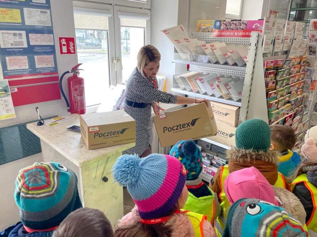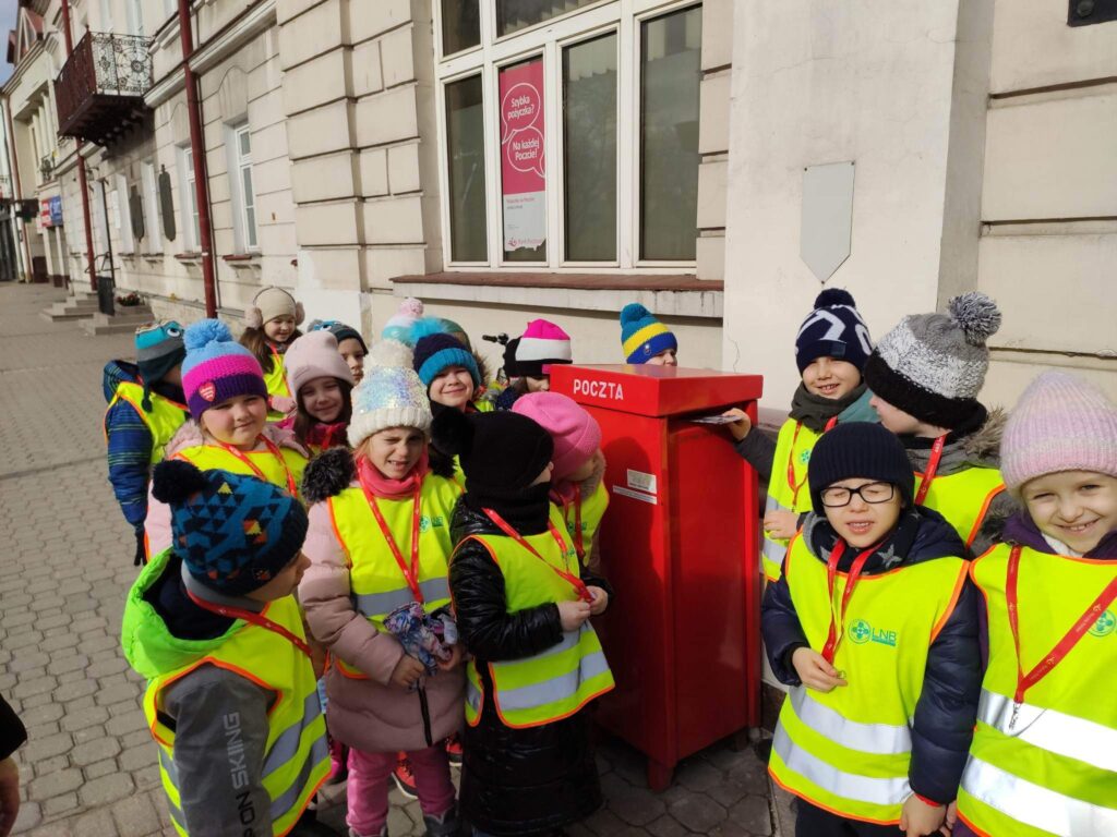 27.02.23 r. Misie dzięki uprzejmości rodziców Szymona i Tymona miały okazję uczestniczyć w pieszej wycieczce do Urzędu Poczty Polskiej przy ul. Piłsudskiego. Dzieci poznały pracę pocztowca, drogę listu a nawet wysłały pocztówkę do Pani Dyrektor. Przedszkolaki poznały również jedne z ważniejszych siedleckich zabytków i przypomniały legendę „Jacka”. Dziękujemy ☺️