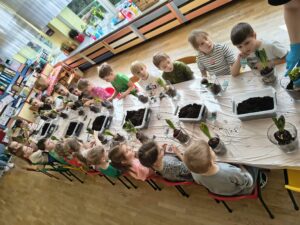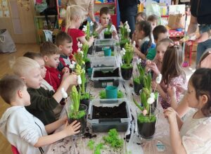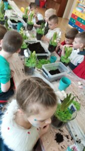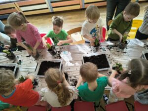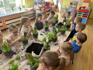 Podczas spotkania przedszkolaki miały okazję stworzyć własny ogród w