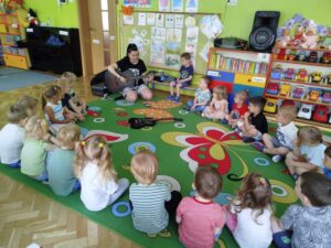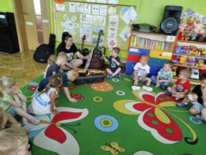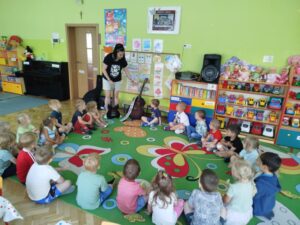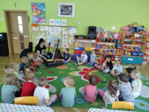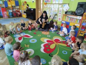 W dniu 17.06.2025r. gr. I "Kotki" mia艂a przyjemno艣膰 go艣ci膰 Muzyka, mam臋 Nataniela. Dzieci pozna艂y zaw贸d piosenkarza oraz instrumenty: saksofon oraz gitar臋 akustyczn膮 i elektryczn膮, a tak偶e dowiedzia艂y si臋 do czego s艂u偶y metronom. Mia艂y r贸wnie偶 okazj臋 pos艂ucha膰 jak brzmi膮 instrumenty a tak偶e spr贸bowa膰 na nich zagra膰, co wywo艂a艂o du偶o rado艣ci. 馃幍馃幎馃幑Serdecznie dzi臋kujemy p. Annie za ciekaw膮 prezentacj臋 i zapraszamy ponownie.