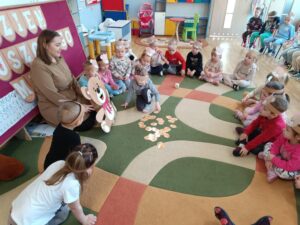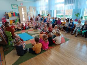 W tym szczególnym dniu odwiedziły nas dzieci z gr IV „Żabki”. Dzieci wspólnie bawiły się przy misiowych przebojach, poznały historię powstania misia, brały udział w zabawach matematycznych oraz wykonały pracę plastyczną.