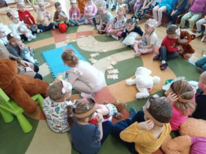 Dnia 26 .11.2024 r. Dzieci z gr.III Pszczółki uczestniczyły w obchodach „Światowego Dnia Pluszowego Misia”