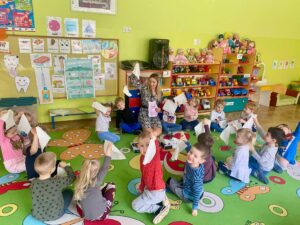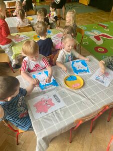 W miesiącu marzec grupa Kotki rozpoczęła realizację ogólnopolskiego programu edukacyjnego pt. "Czyściochowa Akademia". Dzieci poznały pierwszych bohaterów programu: pieska Łapsona i świnkę Zakatarzynkę, którzy zapoznali dzieci z prawidłowymi nawykami higienicznymi w zakresie właściwego dbania o czystość rąk oraz nosa. Kotki poprzez różnorodne aktywności sukcesywnie utrwalają cenne informacje na temat higieny🧼🚿