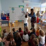 W kwietniu dzieci z gr. Żabki realizowały projekt edukacyjny pt. „Przedszkolak młodym ekologiem” przy współpracy z Urzędem Miasta Siedlce. Celem projektu było przybliżenie przedszkolakom zagadnień, związanych z ochroną środowiska przyrodniczego, nabywanie opiekuńczego stosunku do świata roślin i zwierząt, kształtowanie mądrego i umiejętnego współżycia człowieka z przyrodą, rozwijanie poczucia troski i odpowiedzialności o obecną i przyszłą jakość życia na naszej planecie. 22 kwietnia w ramach obchodów Dnia Ziemi, dzieci uczestniczyły w akcji „Sprzątanie świata”. Poznały zasady segregacji odpadów i utrwalały zdobytą wiedzę w praktyce, brały udział w licznych aktywnościach dotyczących omawianej tematyki. 25 kwietnia Żabki spotkały się z pracownikami UM Siedlce, paniami Weroniką Rucińską-Ochnik i Weroniką Jaszczuk, które przygotowały dla nich ciekawe zajęcia i upominki. Dziękujemy naszym gościom za to spotkanie.
