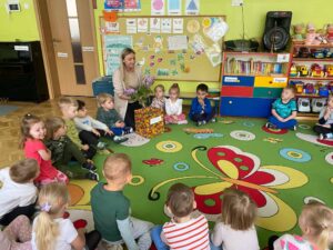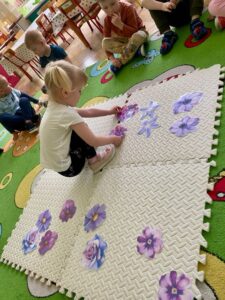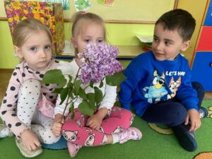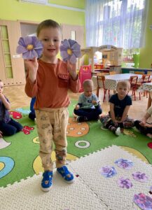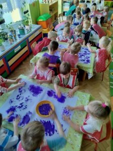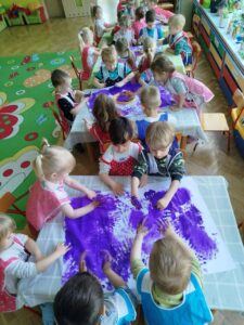 W ostatnich dniach w grupie I „Kotki” realizowany był kolejny moduł projektu „Sensoryczna Tęcza” – kolor fioletowy. Maluszki uczestniczyły w wielu ciekawych aktywnościach m.in: malowanie dłońmi farbą na dużych arkuszach papieru w rytm muzyki, rozwiązywanie zagadek stymulujących zmysł węchu, udział w zabawach rozwijających percepcję wzrokową np. „Znajdź kolor”. Wszystkim naszym zadaniom towarzyszył kolor fioletowy 😊
