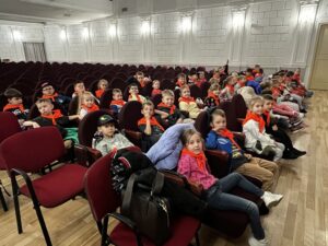 4 kwietnia 2025 r. przedszkolaki z grup Żabki i Smerfy wybrały się na wycieczkę pieszą do sali widowiskowej,, Podlasie” na przedstawienie teatralne pt. „Feliks Mądra Mrówka”. Historia Feliksa – rezolutnej mrówki, która dzięki swojej inteligencji i zaradności pomaga chłopcu. Pokazuje, jak ważne są współpraca, przyjaźń oraz troska o innych. Spektakl wzbudził w dzieciach wiele pozytywnych emocji. Udział w przedstawieniu był dla naszych przedszkolaków świetną okazją do zaprezentowania zasad kulturalnego zachowania się w teatrze.