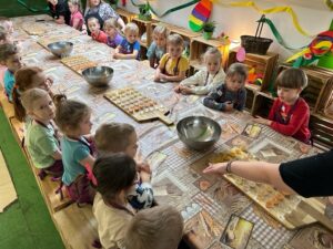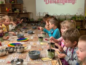 15.04.25 r. dzieci z grupy Pszczółek wzięły udział w WARSZTATACH ŚWIĄTECZNYCH NAJ-WIĘKSZEJ NOCY organizowanych przez Kulinarne Poddasze w Siedlcach.