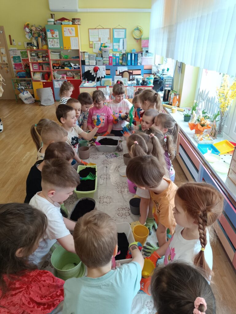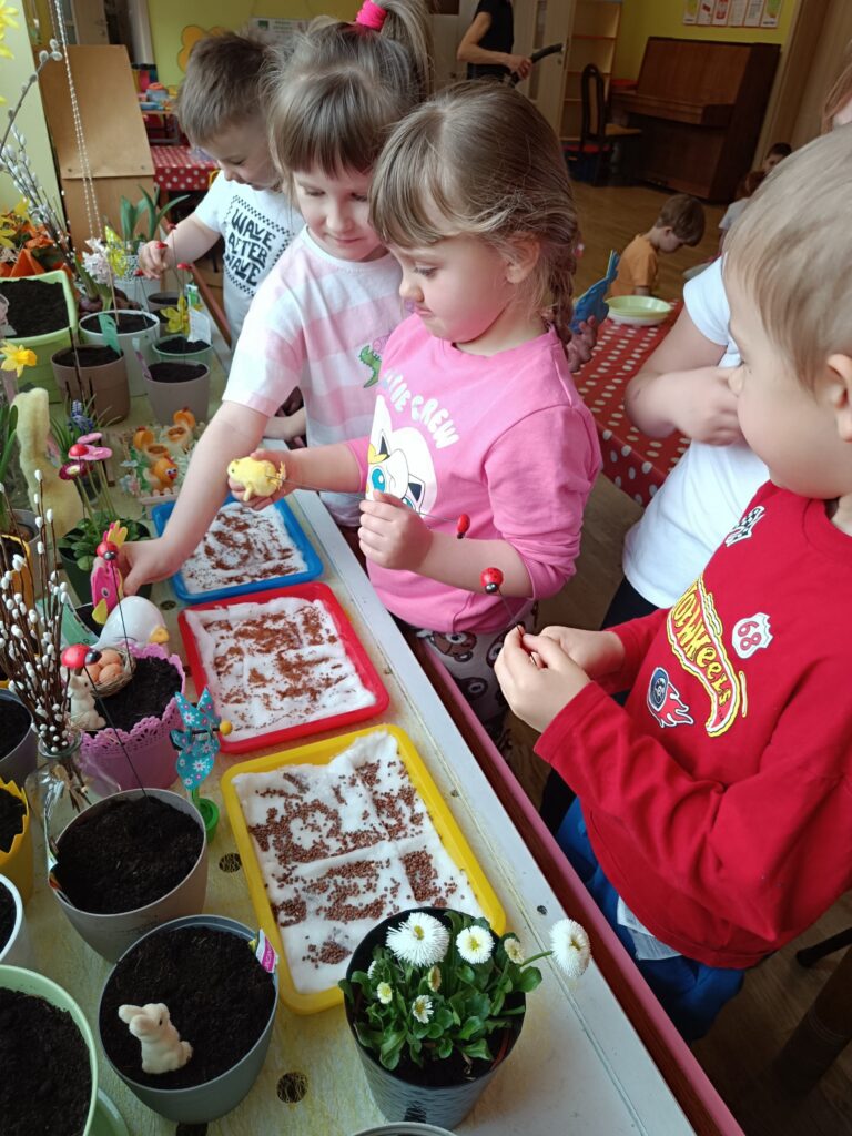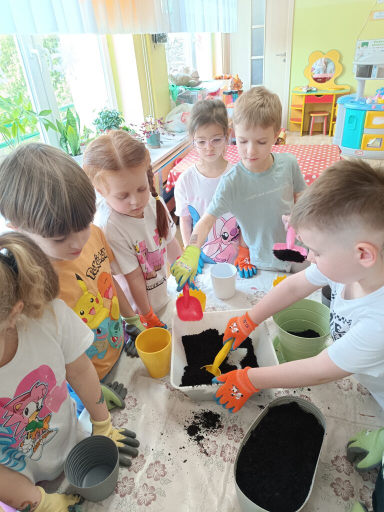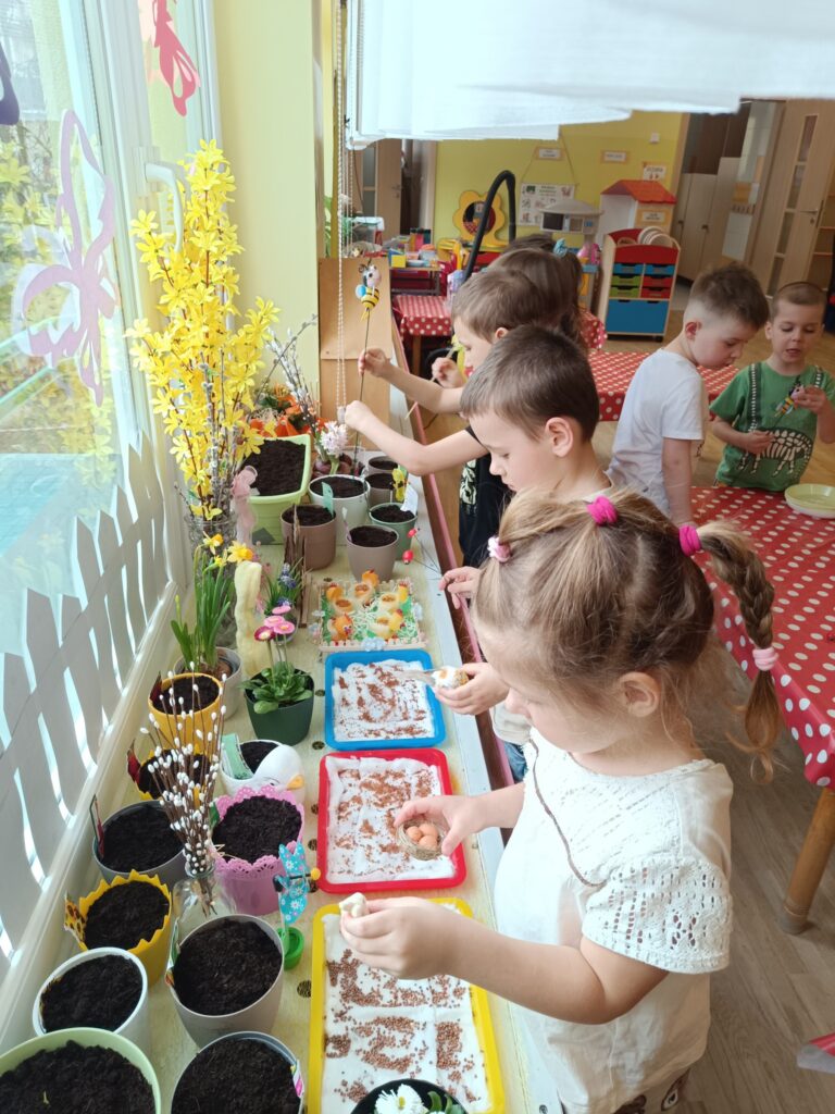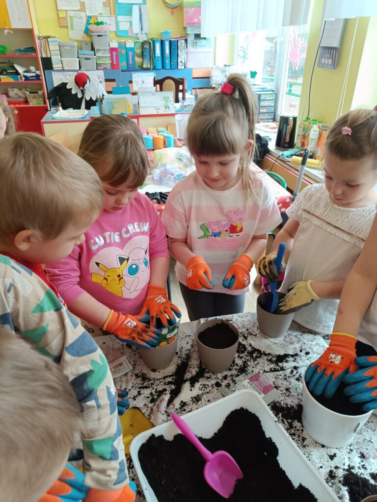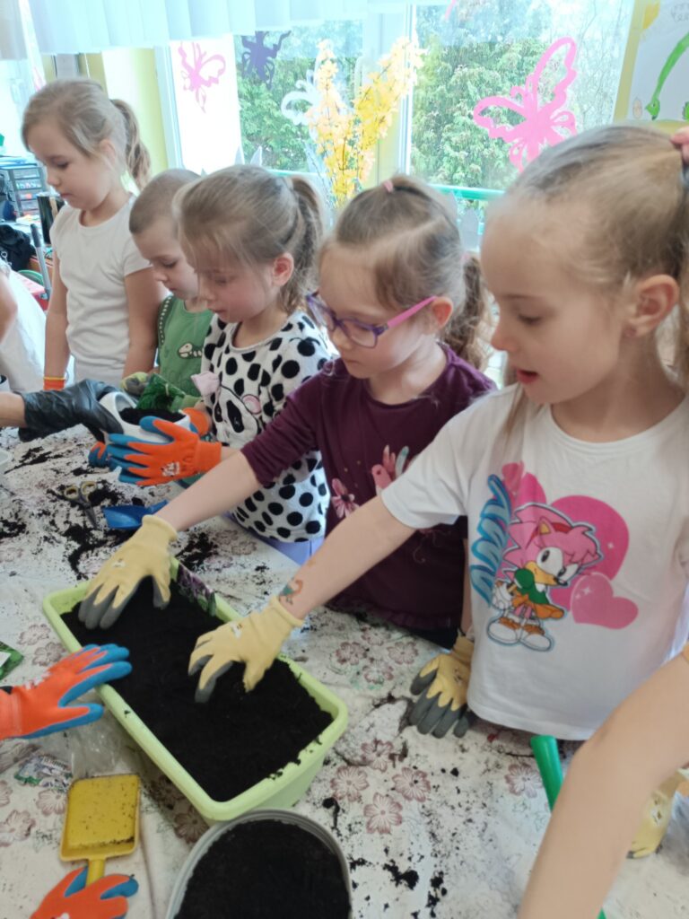 W dniu 20.03.2026 r. dzieci z grupy IV „Pszczółki” uczestniczyły w zajęciach gospodarczych pt. „Zakładamy wiosenny ogródek”. Przedszkolaki z zaangażowaniem sadziły owies, rzodkiewkę, rzeżuchę, kiełki, koperek oraz kwiatki, poznając przy tym zasady pielęgnacji roślin.