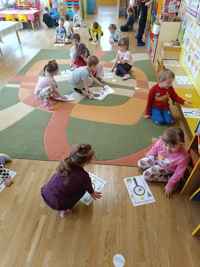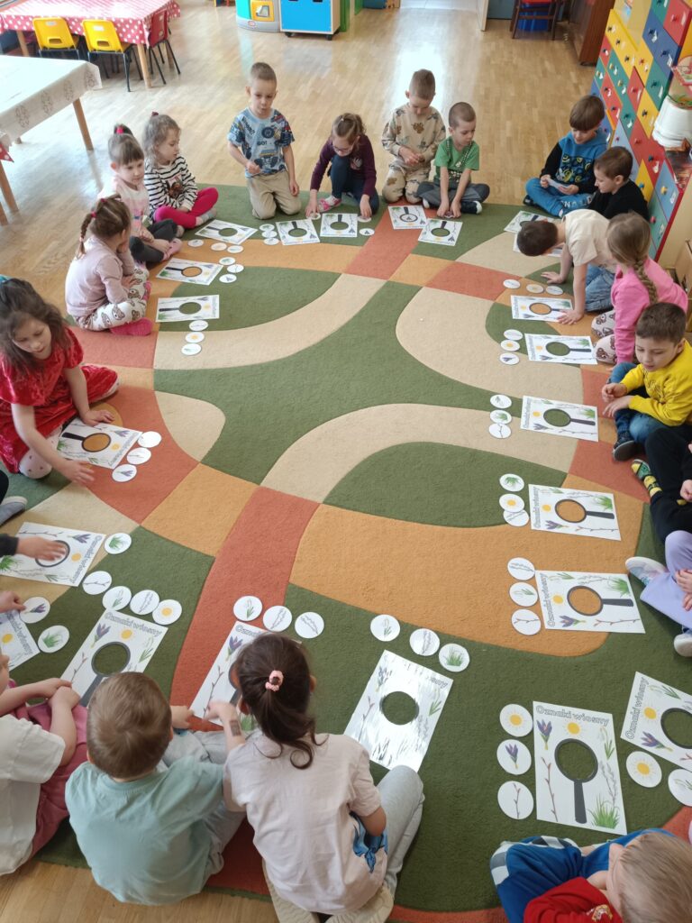 Dzieci wzięły również udział w zabawie tropiącej „Pierwsze oznaki wiosny”, obserwując zmiany zachodzące w przyrodzie.