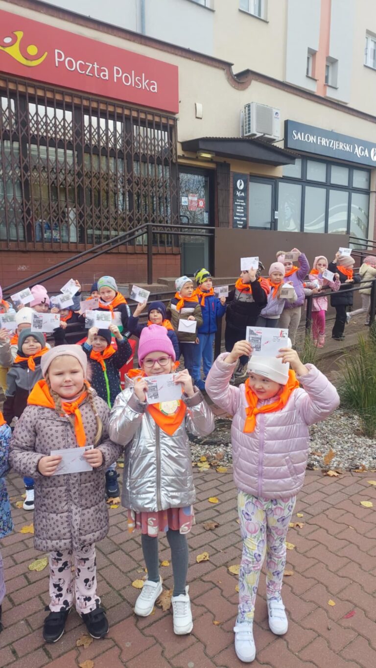 ,, Z wizytą na Poczcie" W czwartek 30 października w ramach zajęć o zawodach sześciolatki z gr. V ,,Żabki" wybrały się na wycieczkę do urzędu pocztowego. Dzieci poznały etapy drogi listu, zobaczyły stanowiska pracowników poczty i dowiedziały się jak ważna jest praca listonosza.📮