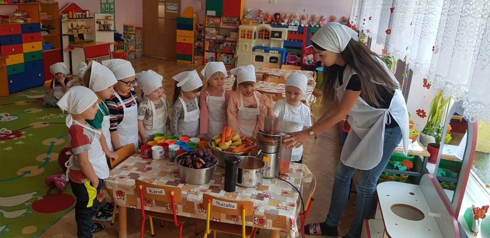 Wszyscy dobrze wiedzą jak bogate w witaminy są soki owocowe – warzywne, dlatego dzieci z gr. ,,Smerfy” przekonały się o tym, podczas robienia i picia soku. Dzieci pełne zainteresowania i ciekawości przystąpiły do mycia owoców, później już pozostało tylko wrzucenie ich do wyciskarki i sok gotowy. Wszystkim bardzo smakował, ponieważ wykonany był przez dzieci, bez cukru i konserwantów. Bardzo dziękujemy mamie Franka Kisielińskiego za ofiarowanie owoców do przygotowania soku.